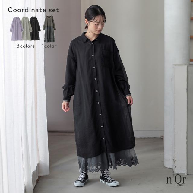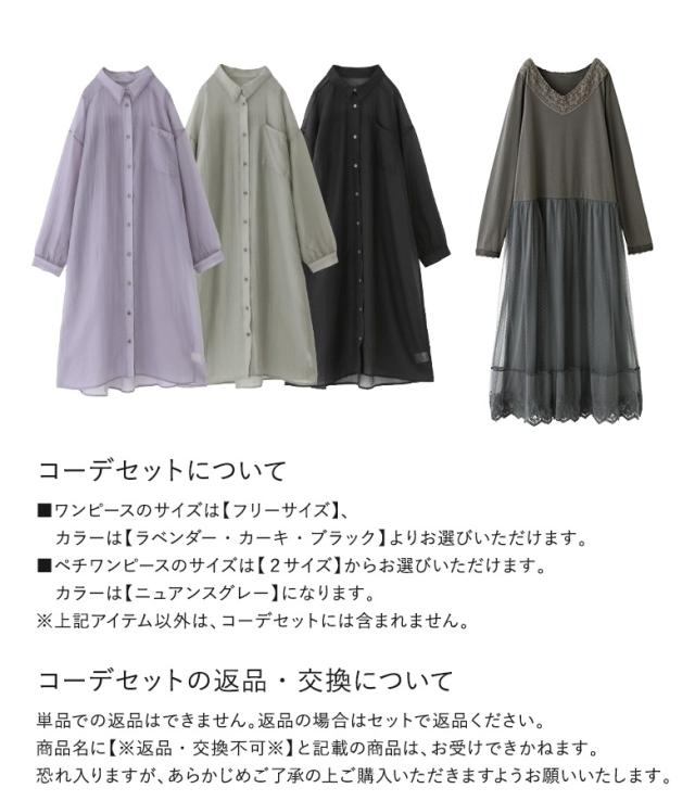 1,000円オフ4日0時迄 『バックギャザーシアーシャツワンピース×贅沢レース長袖ペチワンピースコーデ2点SET』【メール便不可】【20】[2点コーデセット 2026 レディース シャツワンピース ロンT カットソー ペチワンピース ペチコート]