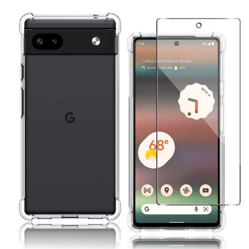 Wekrsu 対応 Google Pixel 6a 用の ケース + ガラスフィルム 柔軟 TPU カバー 全透明 散熱加工 黄変しにくい 日本旭硝子製 フィルム 強化ガラス 硬度9H 高透過率 飛散防 [ 全面保護カバー 耐衝撃 落下防止 すり傷防止 薄型 軽量 携帯便利 ] 指紋防止 気泡ゼロ 自動吸着 貼り付