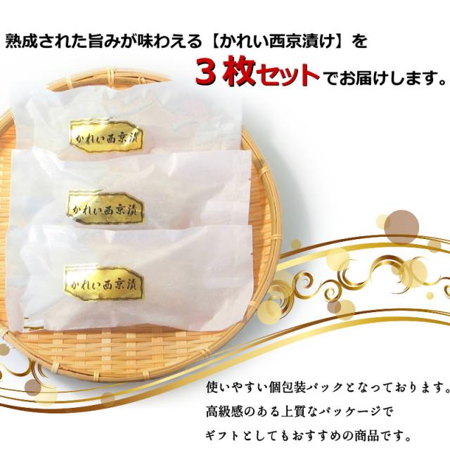 西京漬け 鰈 かれい西京漬け 3枚入 真空パック 厚切り カラスカレイ使用 西京焼きに 冷凍 漬魚 国内加工