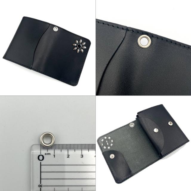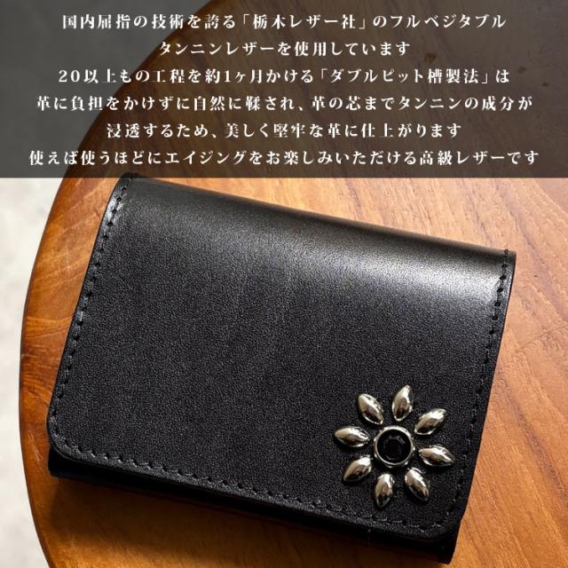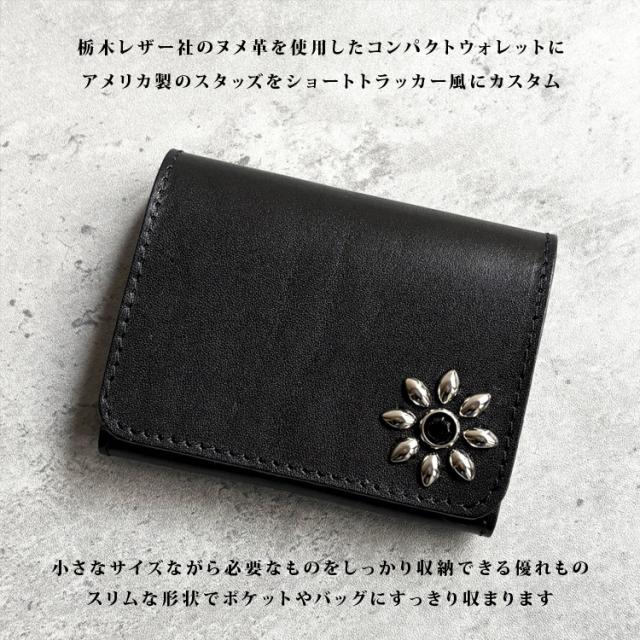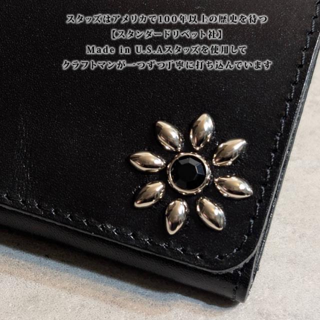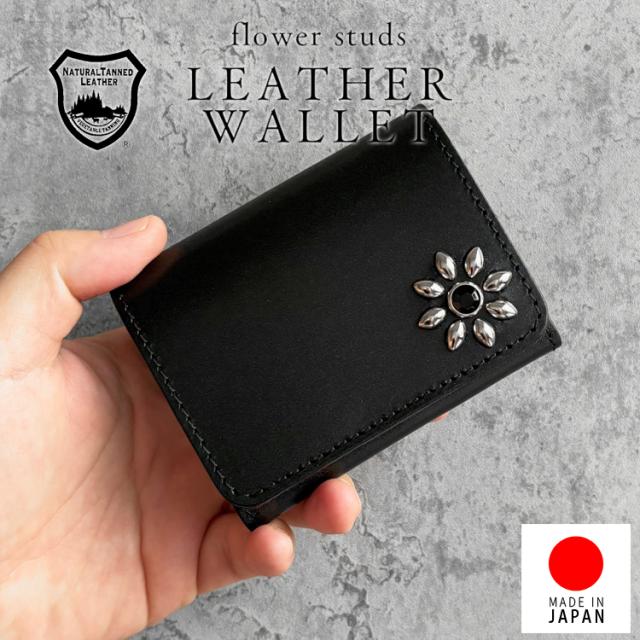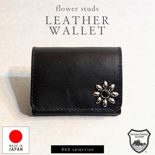 日本製 栃木レザー フラワースタッズ トラッカーウォレット 財布 コンパクト 二つ折り ミニ財布 スタッズ 本革 日本製 ユニセックス シンプル 男性用 女性用 牛革 レザーウォレット 241ts-100lw