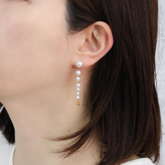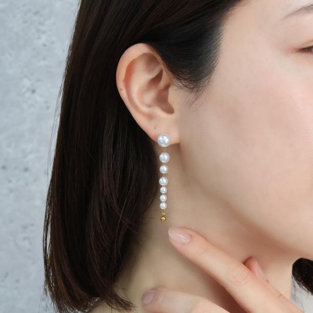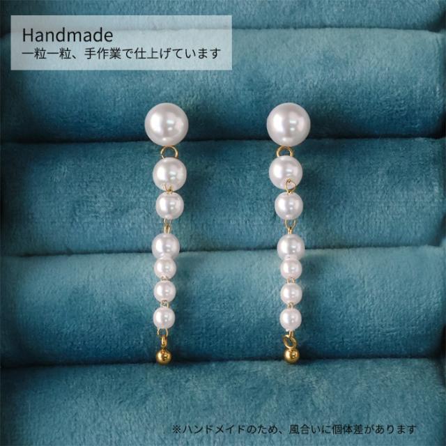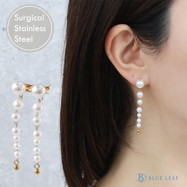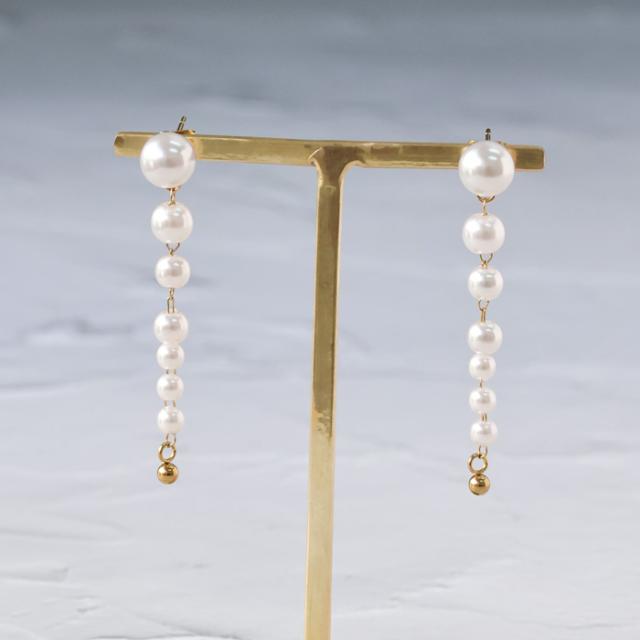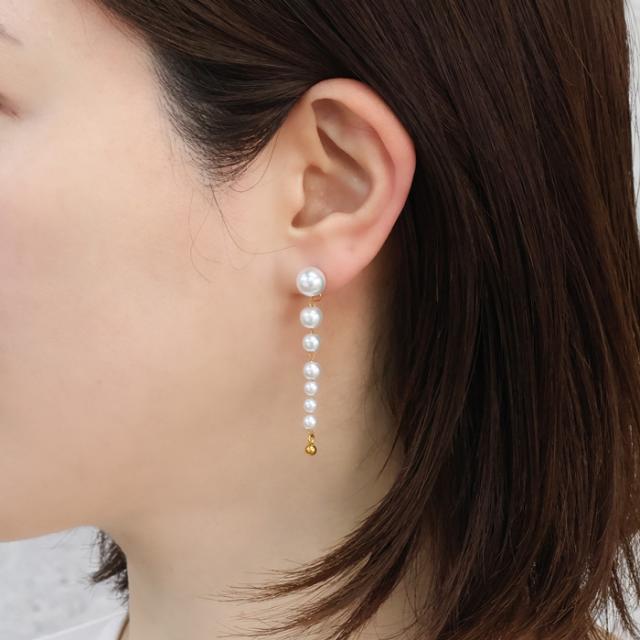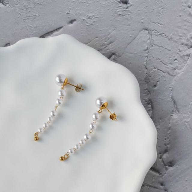 ピアス パール 揺れる 7粒 ロングピアス ニッケルフリー サージカルステンレス ステンレス 18金コーティング 18K デザイン 大人可愛い 低アレルギー ゴールド