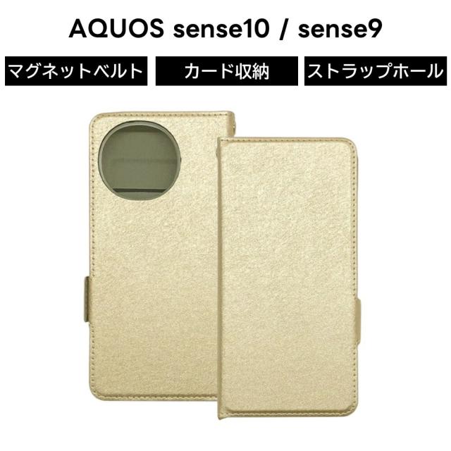 AQUOS sense10 ケース AQUOS sense9 ケース 手帳型 SH-M33 SH-53F SHG15 SH-53E SHG14 SH-M29 ゴールド シンプル マグネット ベルト カードポケット カード収納 フリップカバー 手帳型ケース カバー