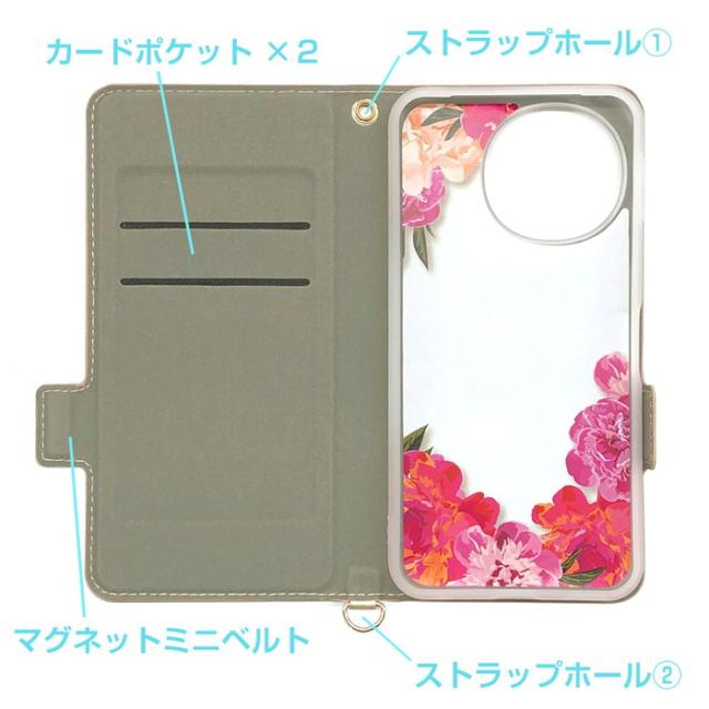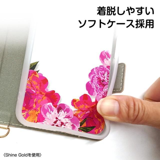 やわらかなゴールドカラーでまとめた、上品さと華やかさを兼ね備えた手帳型デザイン。