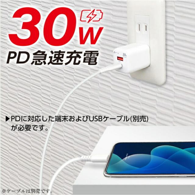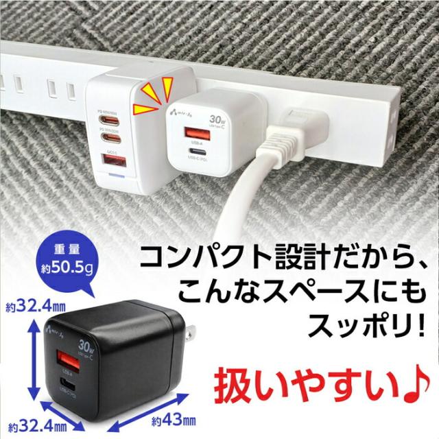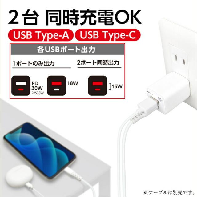 充電器 ACアダプター PD 30W 急速充電器 USB-C USB-A 2ポート 折りたたみプラグ 小型 コンパクト PPS対応 iPhone16 iPad MacBook Air Android Galaxy Pixel 対応 2台同時充電 PSE認証済 ホワイト