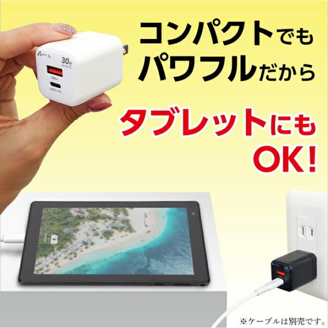 ■PD30W対応(USB-C)、スマホはもちろん、タブレットの急速充電もOK。