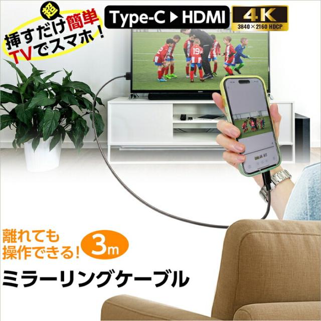 HDMI to Type-C 変換ケーブル 3m 4K 60Hz対応 ミラーリングケーブル USB-C ディスプレイケーブル 音声映像同期 ノートPC Nintendo Switch PS5対応 ポータブルモニター 接続用 画面拡張 複製 大画面 ロングケーブル 人気 おすすめ