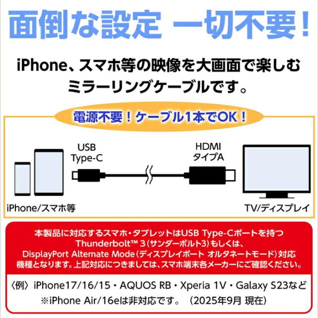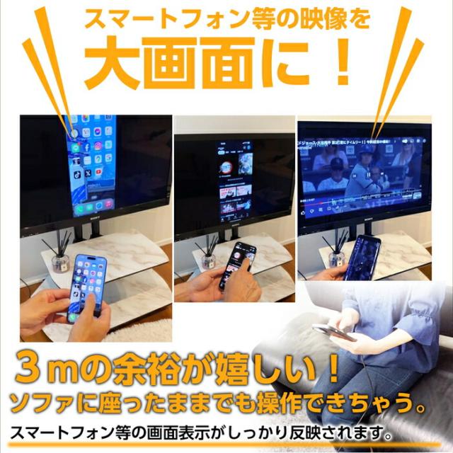 iPhone、スマホ等の映像を大画面で楽しむミラーリングケーブルです