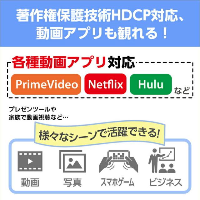 ■著作権保護技術HDCP対応、動画アプリも観れる