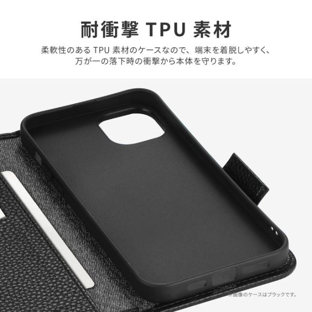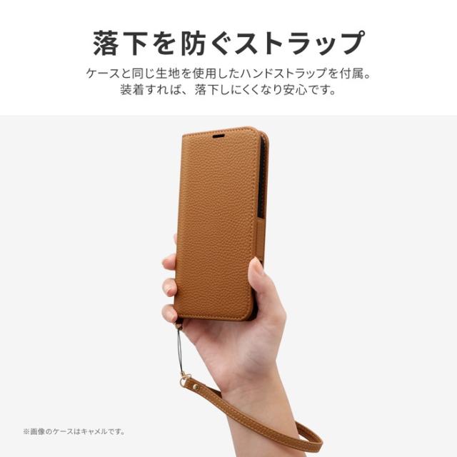 本革のような風合いのレザーと丁寧な縫製が格調高さを醸し出すフラップケース/便利なカード収納(2枚)+大型ポケット/ピタッと固定できるマグネット仕様/耐衝撃TPUケース採用/落下防止に最適な「ハンドストラップ」付属。
