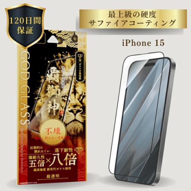 iPhone15 ガラスフィルム サファイアコーティング 全面保護 スーパークリア 角割れ防止 液晶保護 シートフィルム アイフォン15 GOD GLASS 覇獅神