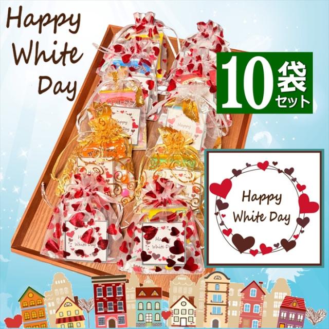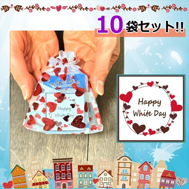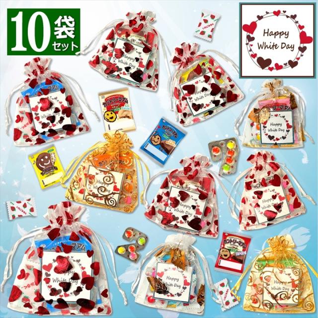 10袋 ホワイトデー お菓子 詰め合わせ 巾着 大量 個包装 2026 小分け 子供 かわいい プチギフト プレゼント セット 麻袋 イベント 飾り オーナメント 子ども キッズ スナック ノベルティ パーティ 子供会 景品 贈り物 オーガンジー キャンディ ばらまき