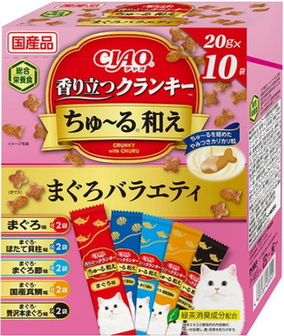 いなばペット チャオ 香り立つクランキーちゅ〜る和え まぐろバラエティ 20gx10袋x12個(ケース販売) P-483