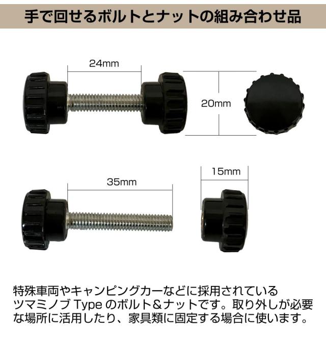 ノブナット ノブボルト M6 ツマミ付きボルト&ナット 2組セット AWD-M6NB DIY キャンピングカー パーツ ボルト ナット ジョイントボルト 固定幅24mm〜30mm