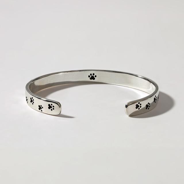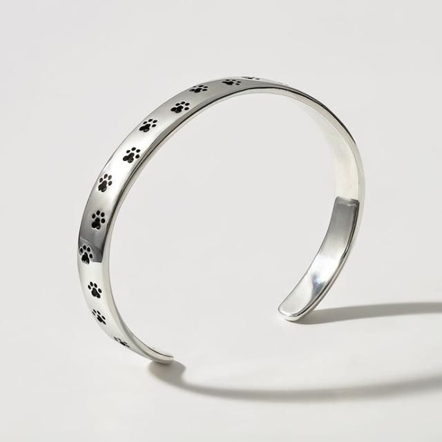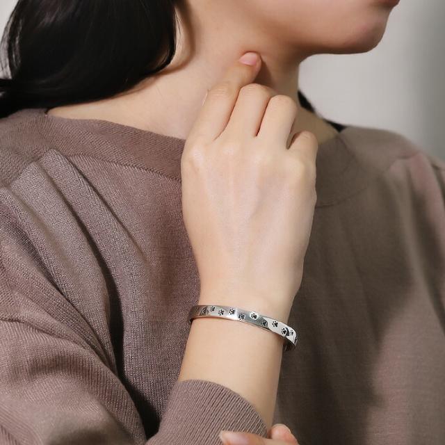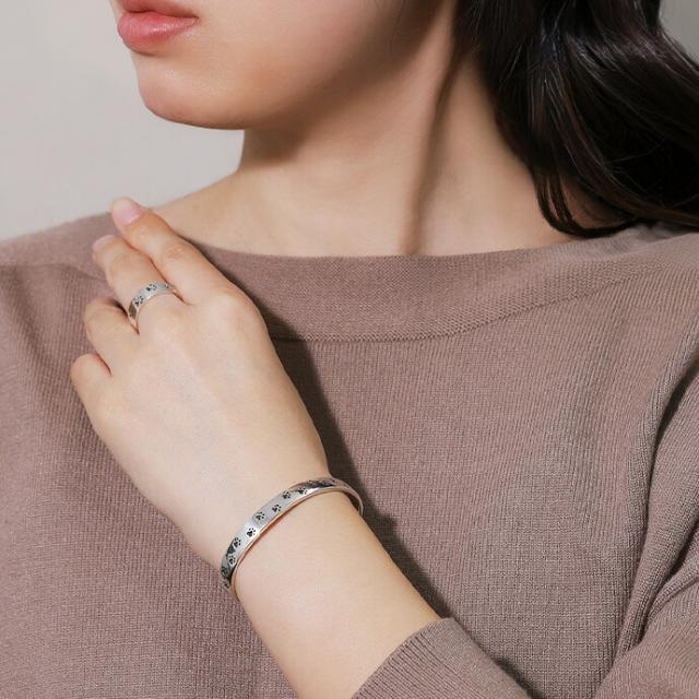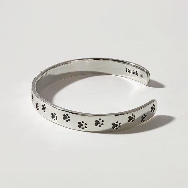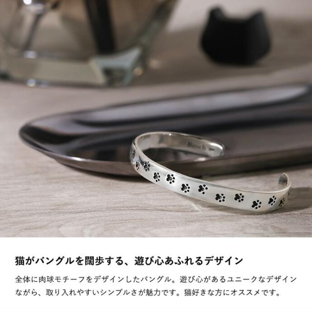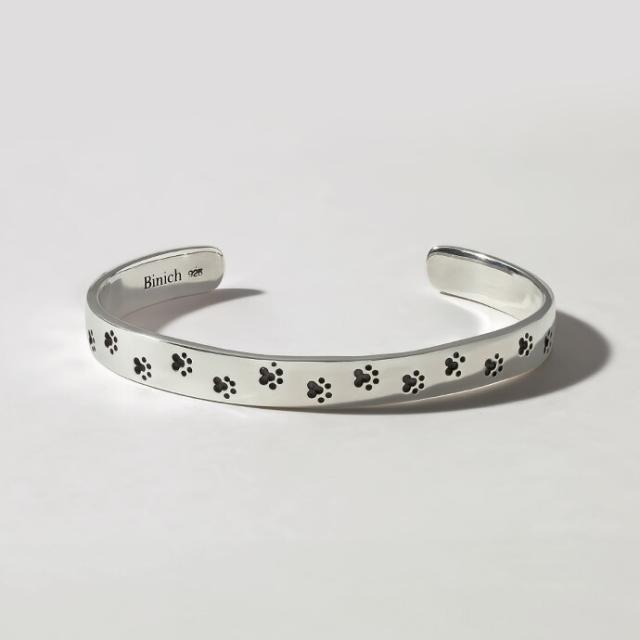 肉球モチーフを全体に刻印したシルバー925製の平打ちバングル。