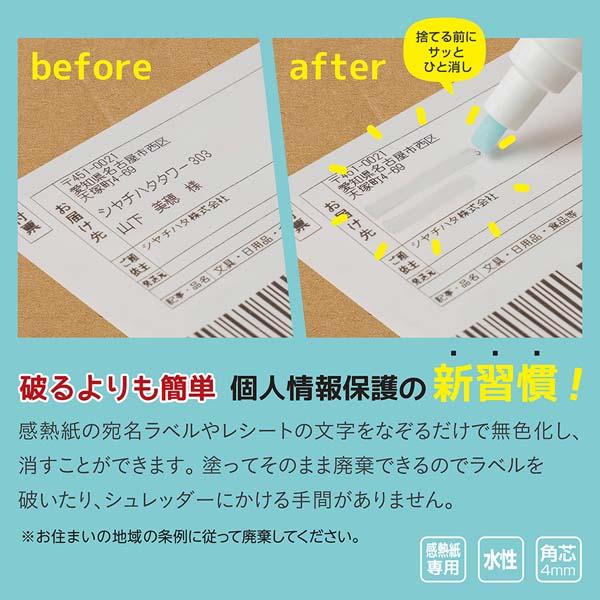 感熱紙用 名前消し 郵便物 名前 あて名 住所 個人情報 レシート 印字 消す ペン 文具 ペンタイプ ゴミ出し ごみ捨て 防犯用品 ポイント消費