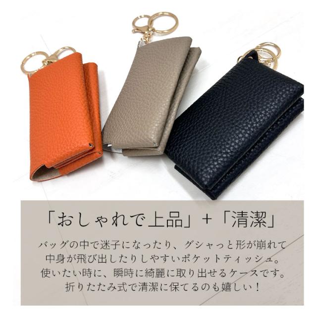 ポケットティッシュケース レザー 合皮 おしゃれ 大人 かわいい コンパクト ミニ ポケットティッシュカバー ポーチ 持ち歩き 持ち運び 吊り下げ フック カナビラ ゴールド 黒 茶色 ベージュ オレンジ シンプル 無地