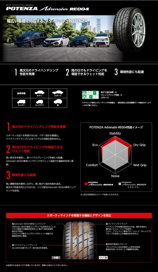 メーカー、銘柄:ブリヂストン POTENZA Adrenalin RE004