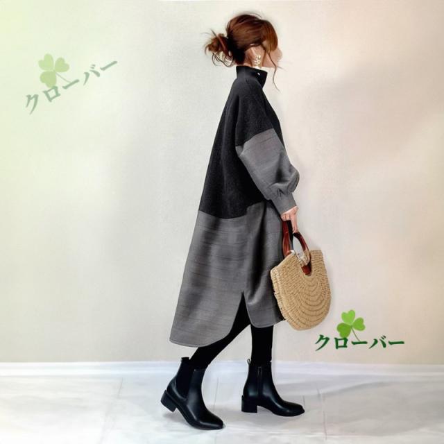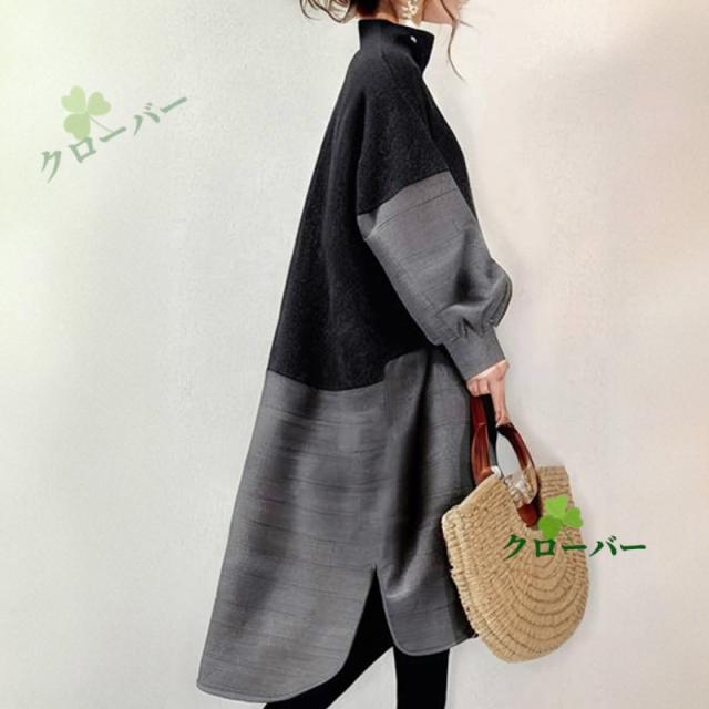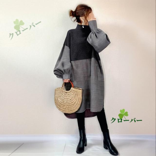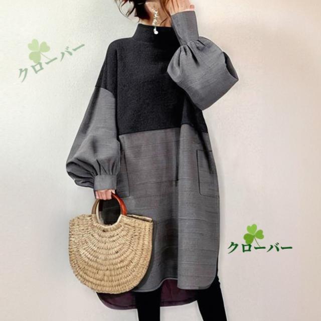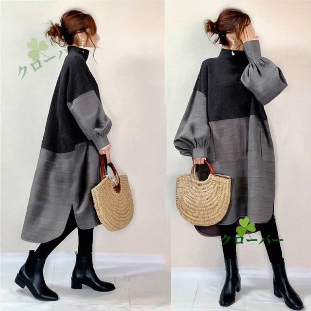 ワンピース レディース 春秋冬 ロングワンピース 長袖 チュニック ロングワンピ ミモレ丈 タートルネック 無地 マキシワンピース 大きいサイズ 体型カバー ハイネック フレア Aライン おしゃれ 大人