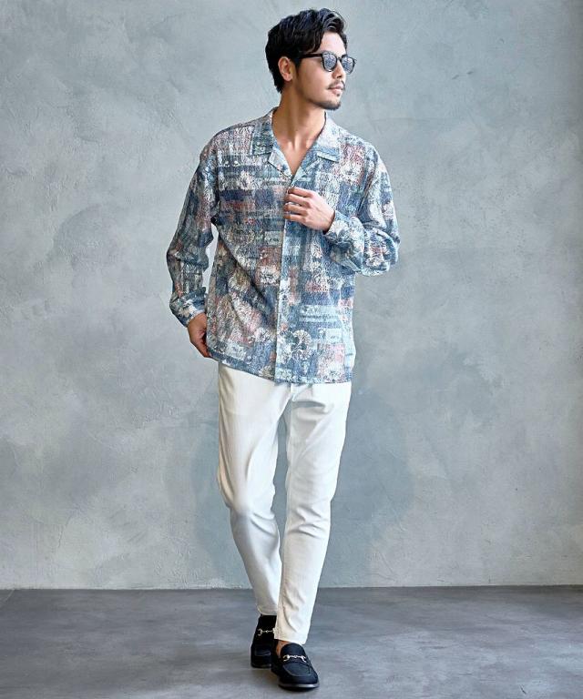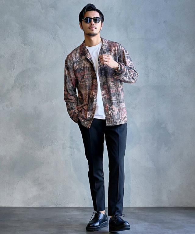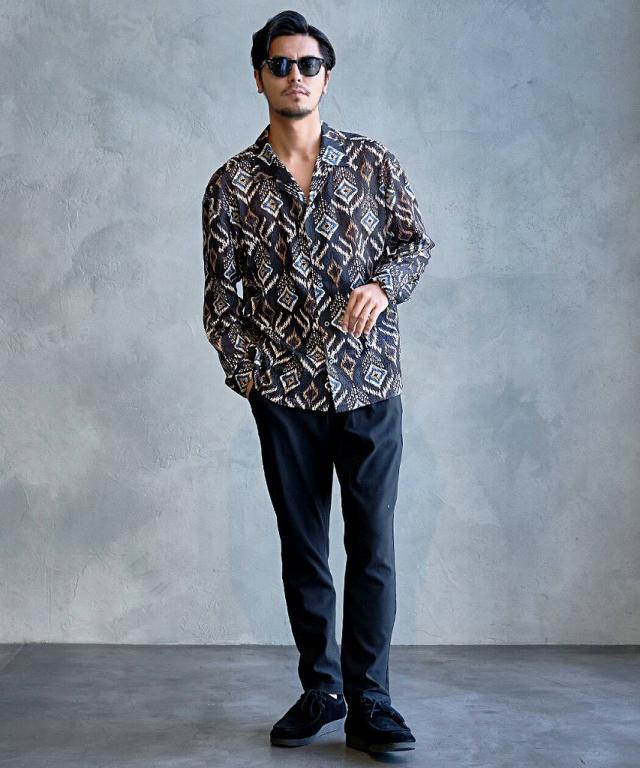 シャツ メンズ ブランド おしゃれ 長袖 長袖シャツ レースシャツ 総柄シャツ CIAO チャオ 大きいサイズ オーバーサイズ ペイズリー レオパード バティック レトロ柄 春 春服 春夏 ブラック ベージュ ブラウン ブルー グレー 黒 M L XL LL 大人 カジュアル 大人 きれいめ モード 韓国系 ちょいワル 男性 男 東京 20代 30代 40代 50代 ファッション プレゼント 誕生日 記念日 贈り物 ギフト配送について