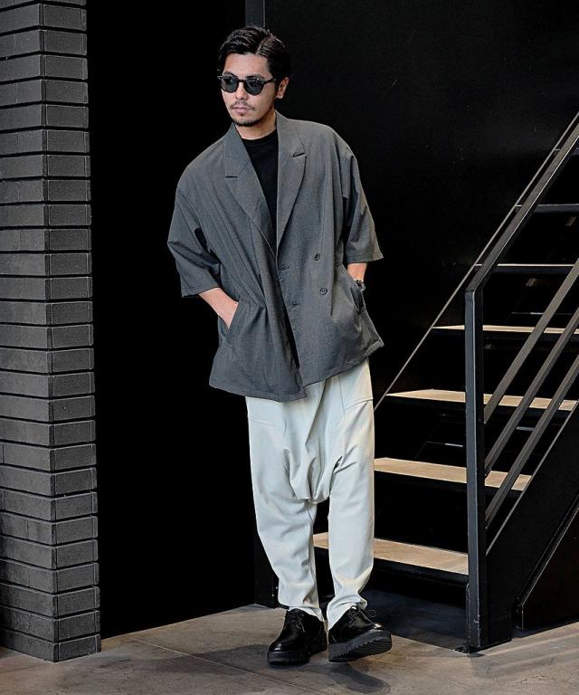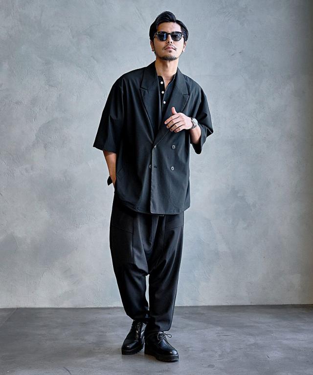 ダブルボタン仕様で上品さを保ちつつ、ゆとりのあるサイズ感で抜け感のあるスタイルを演出します。