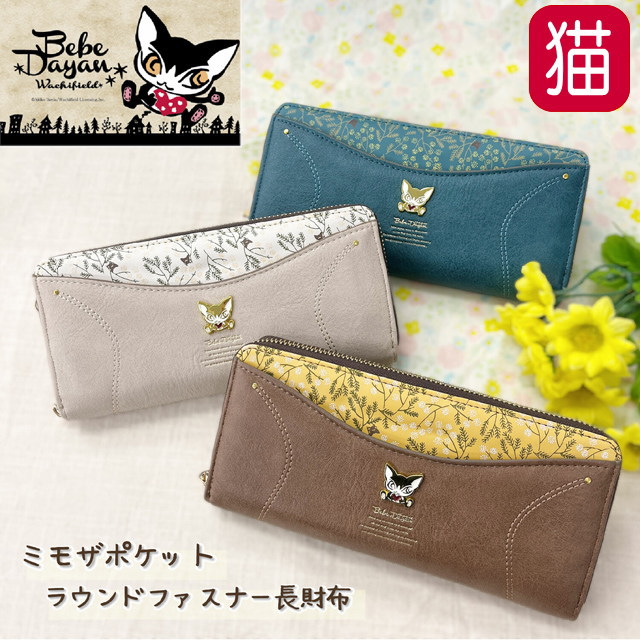 財布 猫 レディース 長財布 ラウンドファスナー 大容量 猫のダヤン べべダヤン ミモザポケット モカ ベージュ グリーン 猫柄 わちふぃーるど 猫雑貨 猫グッズ 人気 便利 女性 かわいい おしゃれ ギフト プレゼント 猫好き 【 誕生日 】