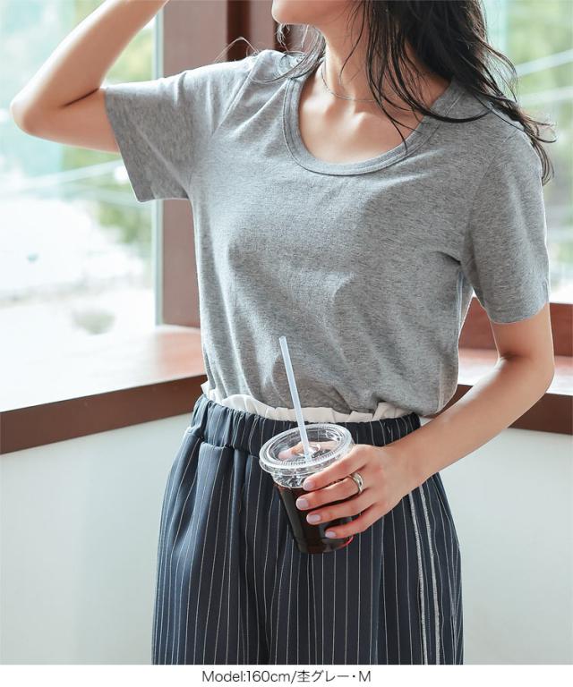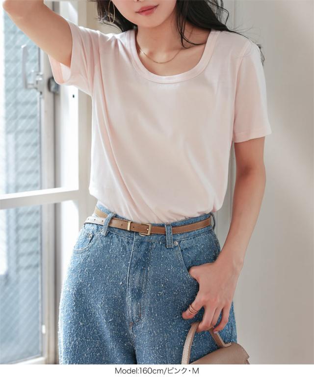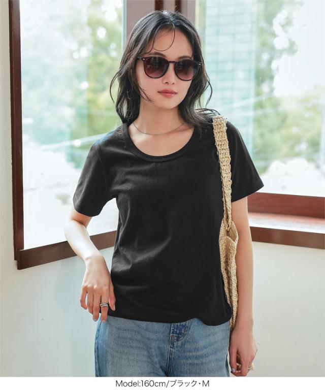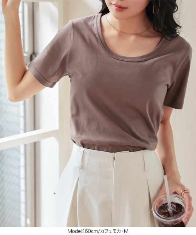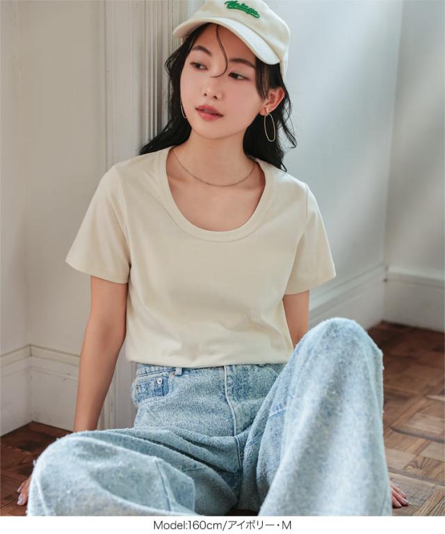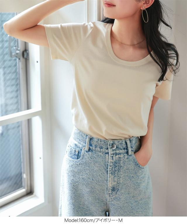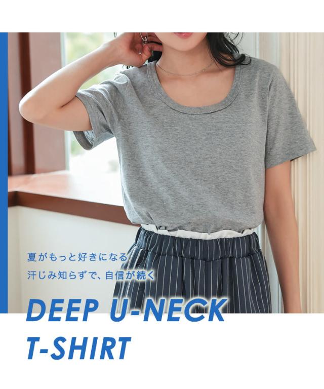 春新作 春新作 [ M L XL 汗じみ防止&UVカット ] 深Uネック半袖Tシャツ C7765 入荷済 レディース 20代 30代 40代 Tシャツ ベーシック シンプル トップス カットソー 綿100 コットン 汗じみ防止 汗 UVカット M L LL XL サイ