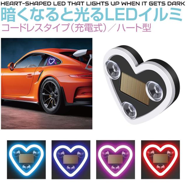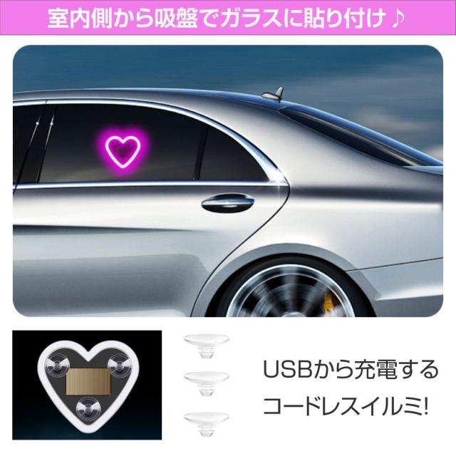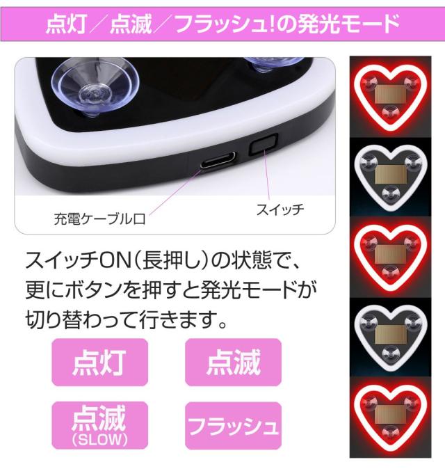 | 商品名 | カーデコレーション ハート型 LEDイルミネーション 充電式 全4カラー |
