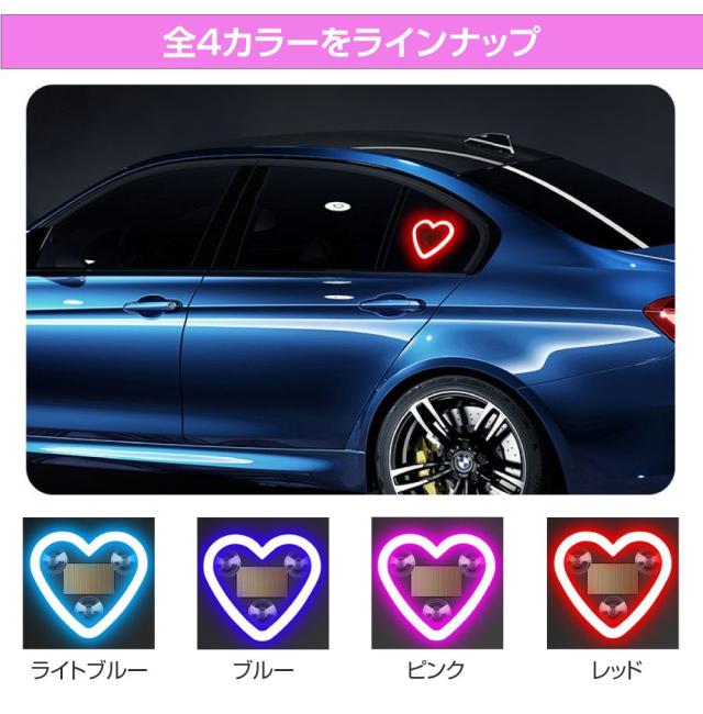 車 イルミ LED ウィンドウ 窓 ハート ピンク ブルー レッド カーデコレーション ハート型 LEDイルミネーション 充電式 全4カラー CZ-CD17 カーアクセサリー かわいい おしゃれ デコレーション 軽自動車 ミニバン 軽バン 自動車 旧車 キャンピングカー 装飾