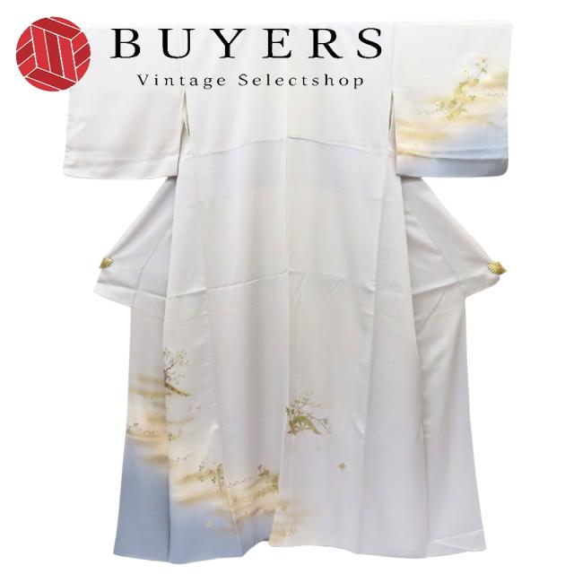中古 訪問着・付下 正絹 シルバー系 グレー系 金彩 和装 呉服 和服 きもの レディース 女性