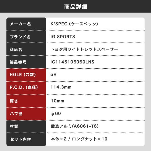 トヨタ用 ワイドトレッドスペーサー スモーク ロングナット PCD114.3 5H 10mm 60-60 IG ワイトレ IG SPORTS IG1145106060LNS