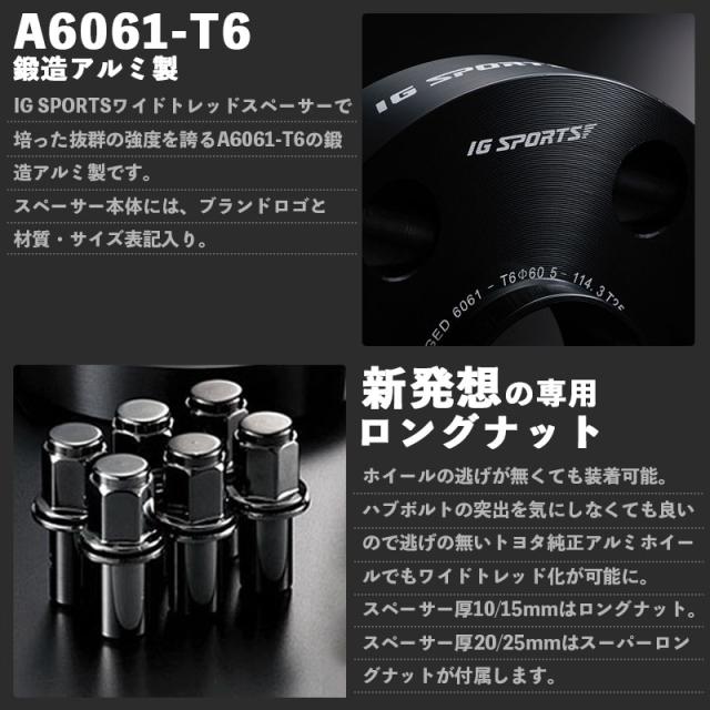 トヨタ用 ワイドトレッドスペーサー スモーク スーパーロングナット PCD114.3 5H 20mm 60-60 IG ワイトレ IG SPORTS IG1145206060SLNS