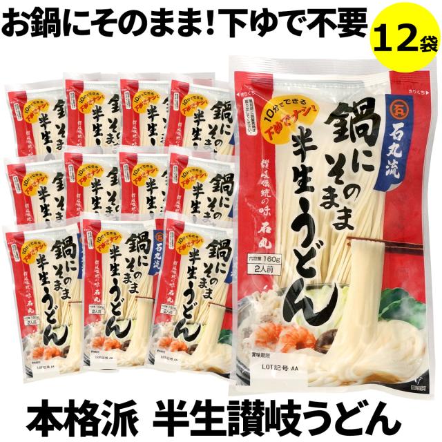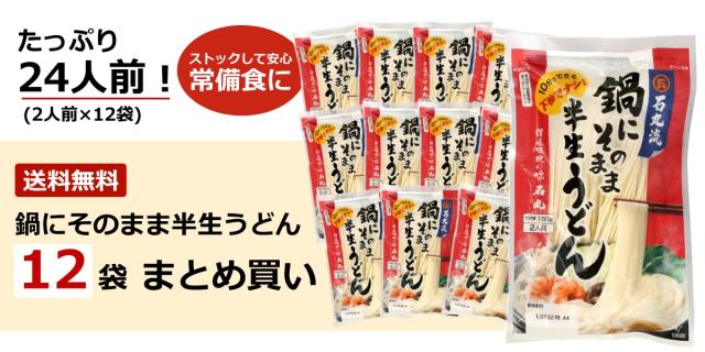石丸製麺 鍋にそのまま半生うどん 24人前(2人前×12袋) まとめ買い 送料無料