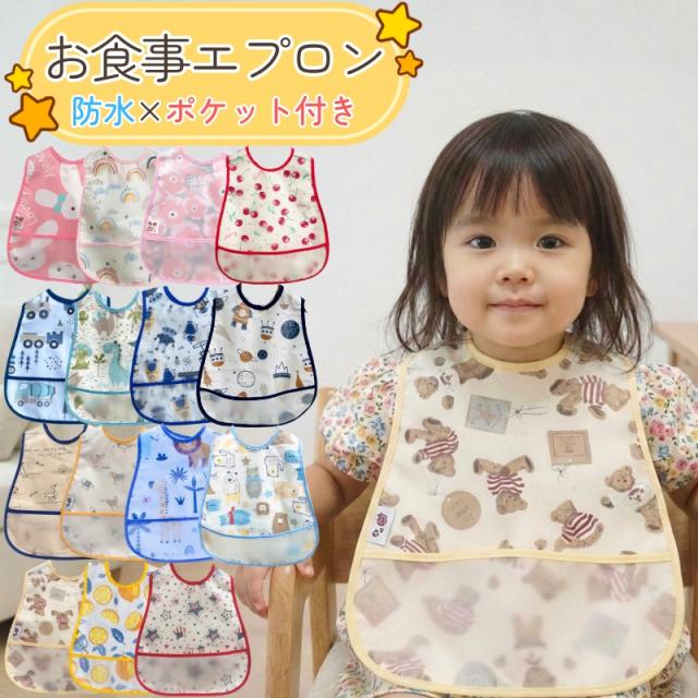 お食事エプロン スタイ ビブ 食べこぼし お食事エプロン キッズ おしゃれ 女の子 男の子 こども 袖なし 幼児 防水 ベビースタイ スモック 保育園 出産祝い 赤ちゃん 子供 入園準備 洗える よだれかけ コンパクト ポケット付き 防水スタイ 離乳食 スタイ 幼児 エプロン