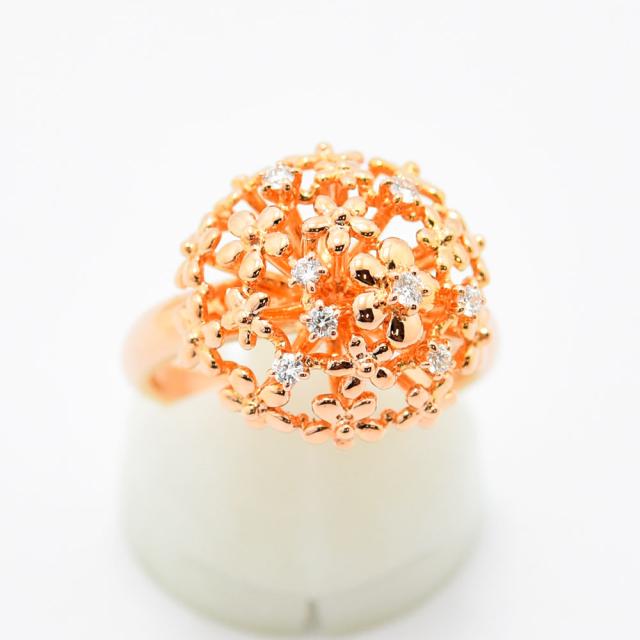 タサキ リング TASAKI 田崎 指輪 花 フラワー ダイヤモンド 0.12 K18PG 約12号 新品仕上げ 中古