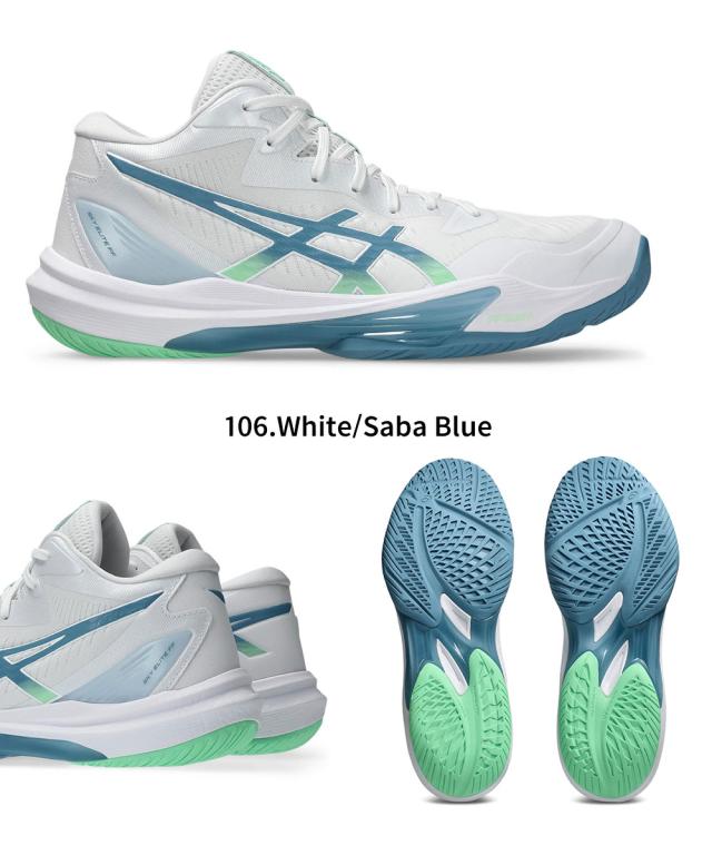 アシックス SKY ELITE FF MT 3 バレーボールシューズ メンズ ミドルカット 反発力 ジャンプ力 安定性 クッション性 グリップ力 フィット感 優れた 通気性 軽量設計 体育館 競技用 部活 試合 上級者向け 高反発モデル 1051A081