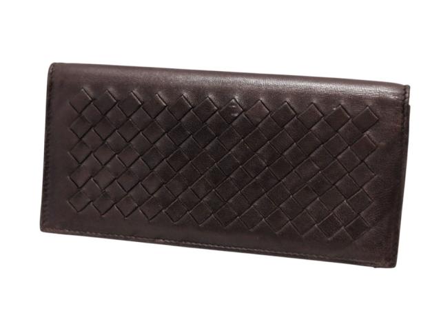 ボッテガヴェネタ イントレチャート 長財布 マチあり 長札入れ ダークブラウン ラムスキン こげ茶 札入 レザー メンズ 163190 小銭入れ