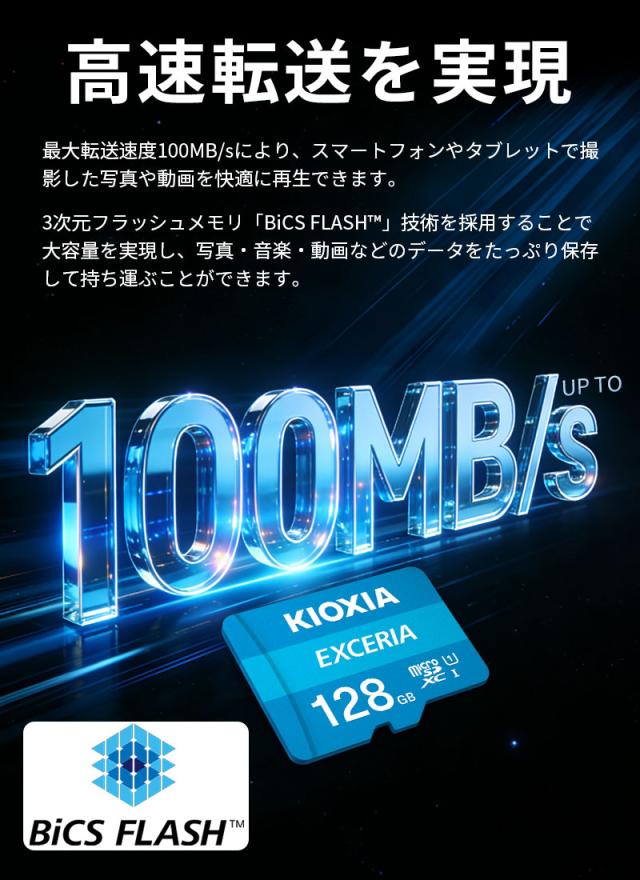 マイクロsdカード microSDXC 128GB Kioxia Nintendo Switch動作確認済 UHS-I U1 100MB/S Class10 FULL HD録画対応 KEMC-A128G EXCERIA 海外パッケージ ポイント消化