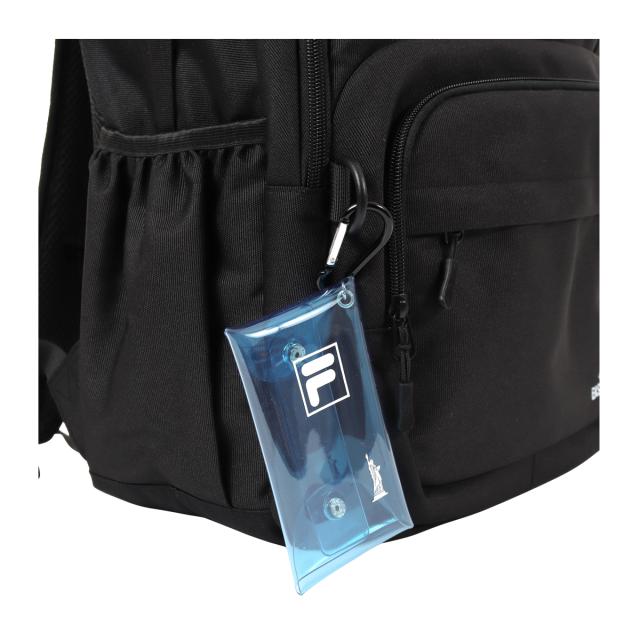 人気ブランド「FILA」「EASTBOY」のコラボリュックです。前面には大きな立体ポケット、お財布やスマホなど便利に収納できるのファスナーポケット。両サイドにはペットボトルや折り畳み傘などが入るオープンポケット。内装部分には小物を小分けに収納できるオーガナイザーポケットなど収納力抜群のアイテムです。夜間の安全を配慮した反射素材を正面とショルダーベルトに使用しています。カラビナ付きミニクリアケースでさわやかでPOPな可愛らしい一面も。