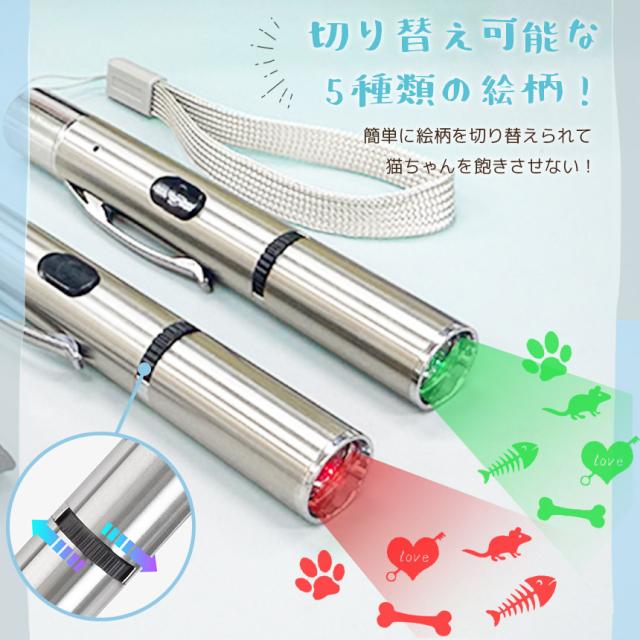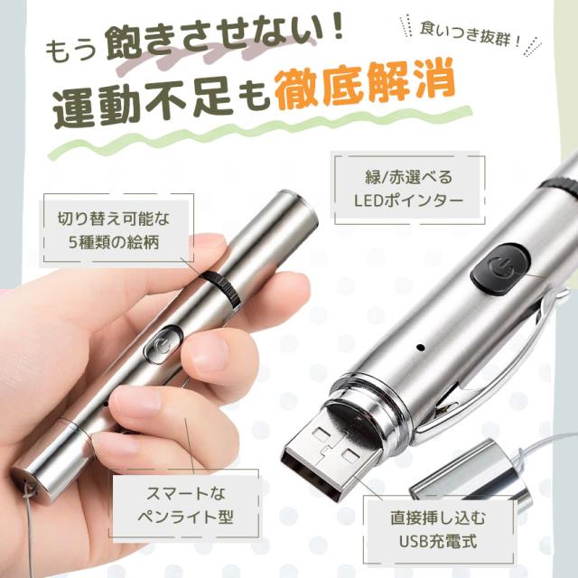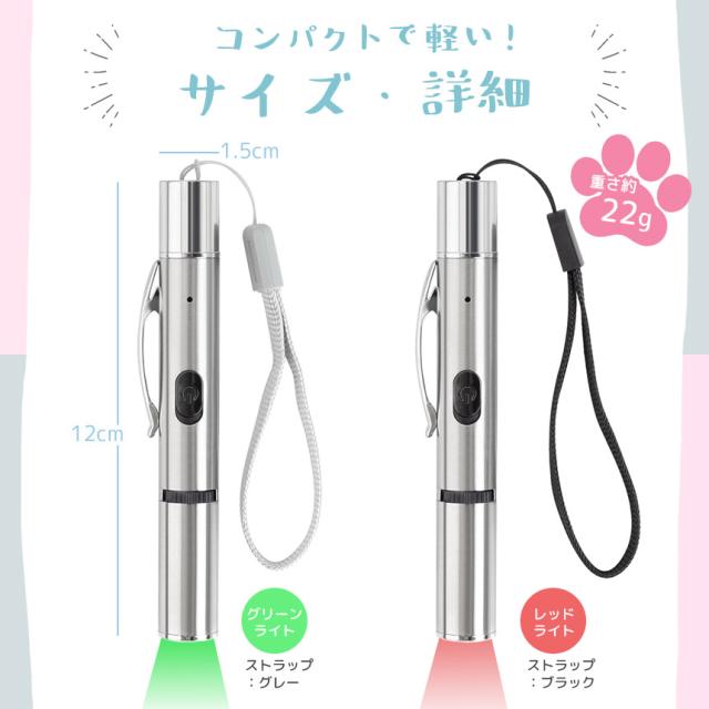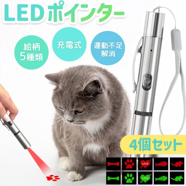 4個セット猫 おもちゃ 猫じゃらし ポインター LEDポインター USB充電 充電式 ライト ねこ ネコ ペット 猫用品 グッズ 遊び道具 ねこじゃらし 光るおもちゃ 運動不足 ストレス解消 肉球 かわいい ペンライト コンパクト 小型 緑 赤 グリーン レッド