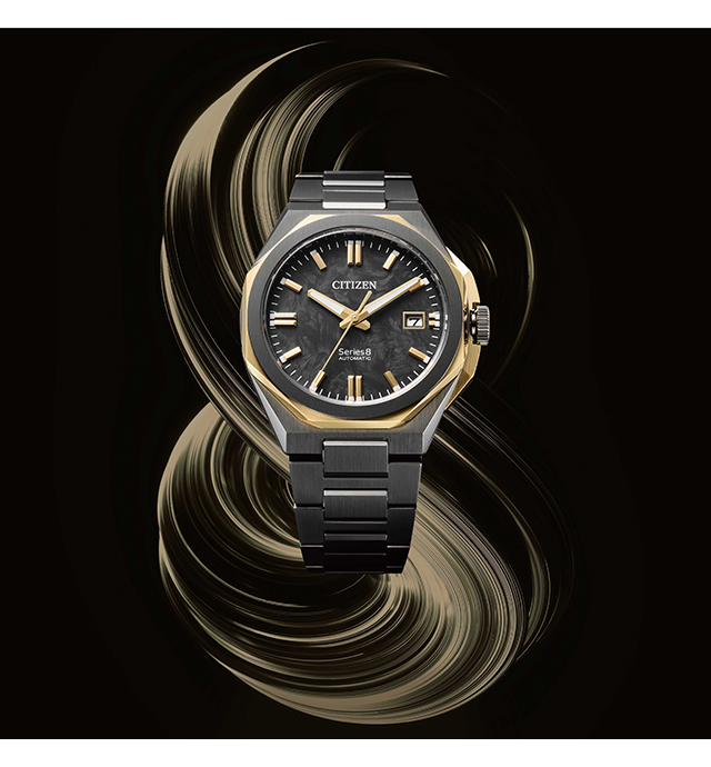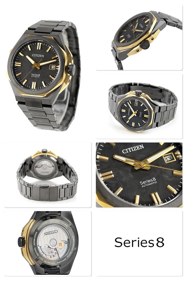 3月19日発売予定 予約受付中 正規品 7年保証キャンペーン 送料無料 シチズン シリーズ8 メカニカル 数量限定 日本製 自動巻き メンズ 腕時計 NB6086-54E CITIZEN Series 8 アナログ ブラック 黒 ◆エッジの効いたモダンデザインと高い実用性を兼ね備えた日本発の機械式時計ブランド、「Series 8(シリーズエイト)」。文字板の素材に鍛造カーボンを使用した限定モデル。ブラックをベースに、ゴールドのアクセントをきかせた特別感のあるデザインが、Series 8の無限の可能性を表現しています。薄型ムーブメントCal.9051を搭載し、世界的なトレンドである少し小さめのサイズを実現。腕なじみが良く、快適なフィット感にこだわりました。5つのパーツで構成された薄型のケースは、それぞれのパーツを徹底的に磨き上げ、シャープでエッジの立ったデザインに仕上げました。文字板を彩るSeries 8のオリジナルパターンとインデックスが、スタイリッシュな印象の中にもエレガントな雰囲気を漂わせます。裏ぶたはムーブメントの動きを楽しめるシースルーバック仕様。磁気による時刻のズレを防ぐSeries8の基本性能「耐磁2種」も備えています。 発売日:2026年3月発売 機械式腕時計