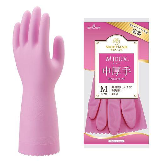 【日本製・炊事手袋】 ショーワグローブ(SHOWAGLOVE) ナイスハンド ミュー 中厚手 Sサイズ ピンク 1双
