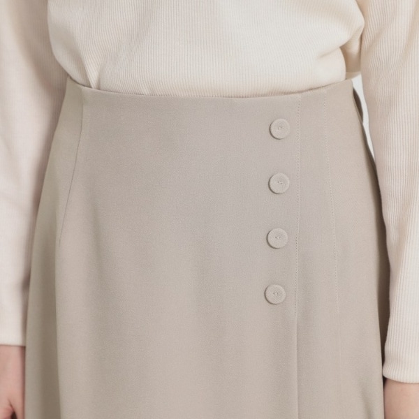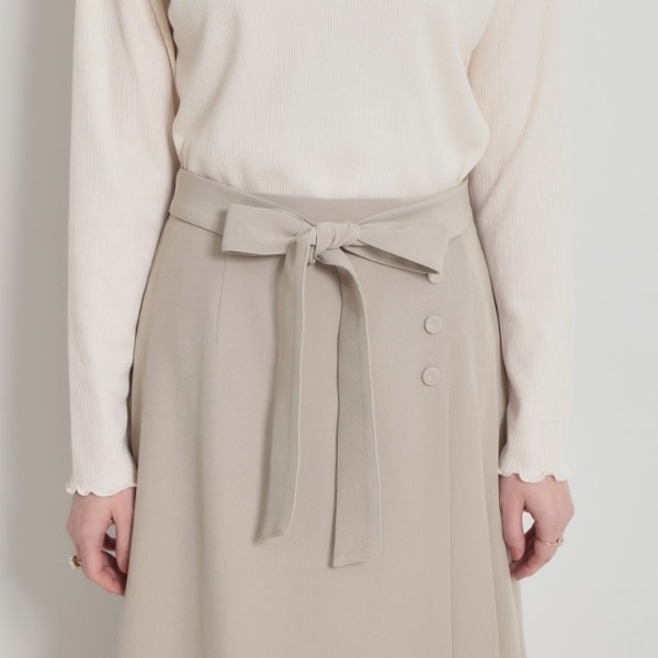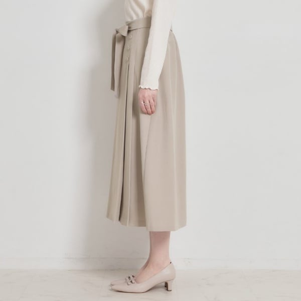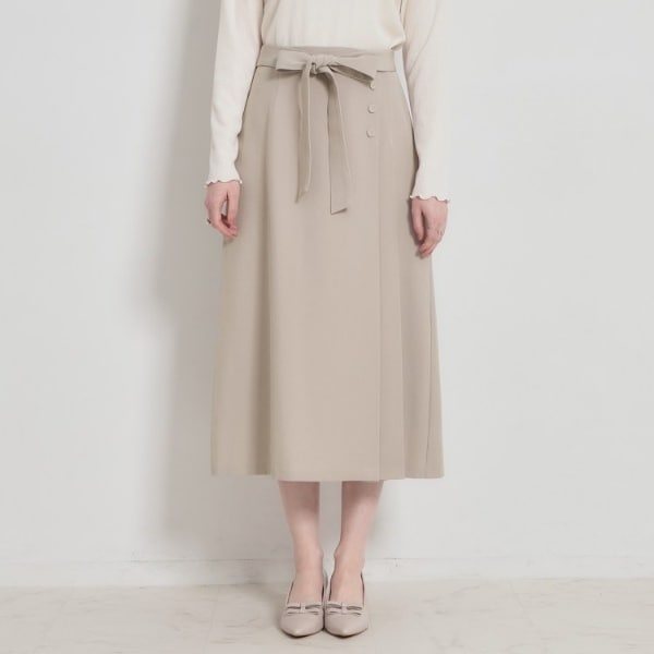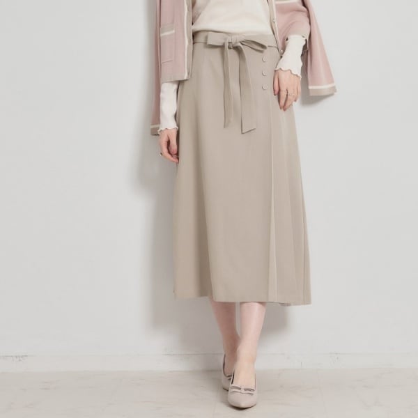 サイドタックプリーツデザインを入れた、ラップ風キレイ目ナロースカート