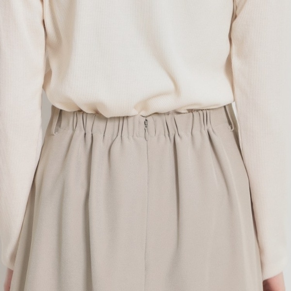 サイドに入ったタックがさりげないアクセントになり、シンプルなトップスと合わせるだけで華やかな印象に。