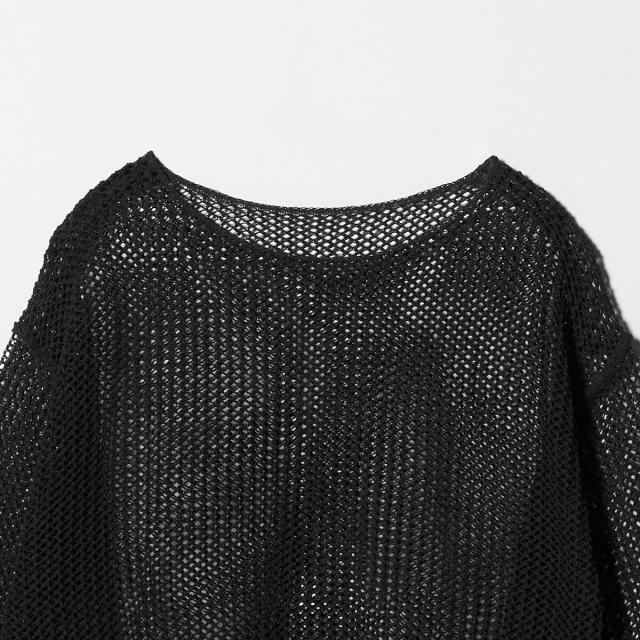 細かなメッシュ編みのニットは、合わせるインナー次第でロングシーズン活躍します。