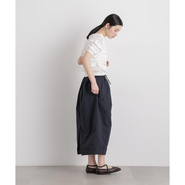 クラフト感のあるフリルシャーリングが存在感のある一着