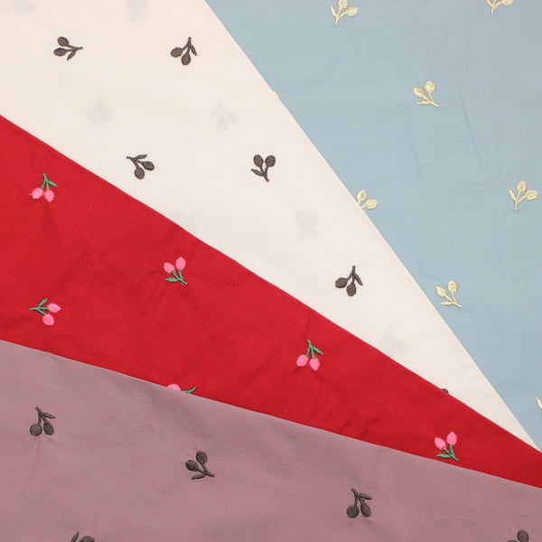 【10cm単位価格】 チェリー刺しゅう カラーレース ソフトブロード 平織り グランド綿100% 刺しゅうポリエステル100% 生地 布 約100cm幅 KOF-34 ゆうパケット2m対応 ( ハンドメイド 手作り 手芸 裁縫 洋服 カーテン ブラウス チュニック 雑貨 )