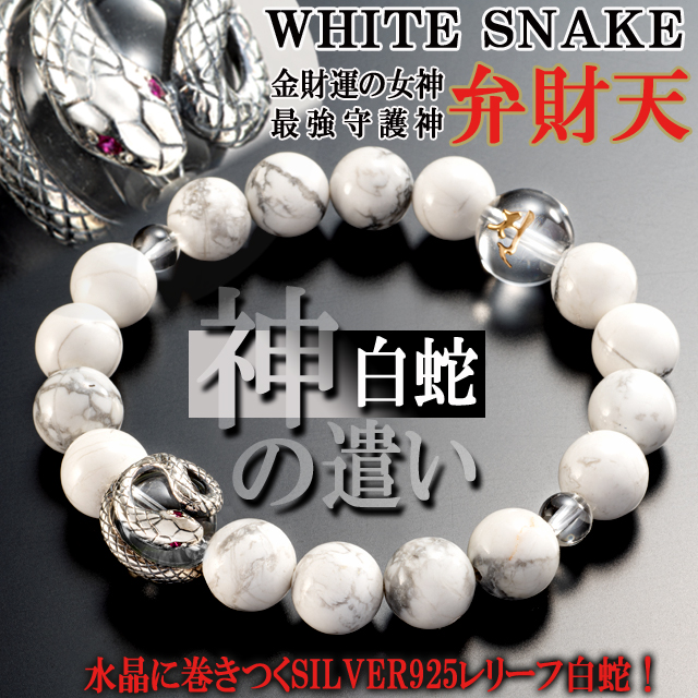 金運開眼マグネサイトパワーブレスレット白蛇 シルバー925 ルビー 水晶 幸運の女神 守護神 大開運 弁財天 パワーストーン 吉兆 不死身 チャンス