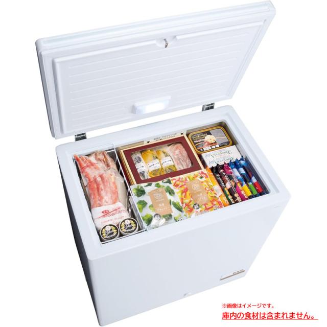 【商品特長】 ◆ぜんぶ、このフリーザーにお任せ! 「冷凍庫のスペースが足りない」「何かあった時のために買い置きしておきたい」そんな方におすすめのチェストフリーザー。 まとめ買いやいただきもの、作り置きなどを保存するセカンド冷凍庫としてもお使いいただけます。 ◆ボタン1つでクイック冷凍 冷気で一気に急速冷凍するため、ドリップが出づらく、解凍時のうまみの流出を抑えます。 ※「クイック冷凍」に設定時のみ。上開き式は冷気が下に逃げるため、扉を開けても庫内の温度が 上がりにくく効率よく冷やします。キャスター付きのため動かしやすさも◎ ◆1℃単位で温度設定が可能 -26℃から-12℃の範囲で、お好みの温度に設定できます。ストックするものによって使い分けが可能です。 ◆LEDライト付きで探しやすい 庫内にLEDライトが内蔵されているため、暗い場所でも物が見つけやすくなっています。 また、鍵付きなので食品を安全に保管でき、安心して使用できます。 ◆家計に優しい省エネ設計 年間消費電力量約 275kWh/年、新JIS省エネ基準達成率は114%。高い冷却性能を保ちながら、環境にも家計にもやさしいフリーザーです。 | |||||||||||||||||||||||||||||