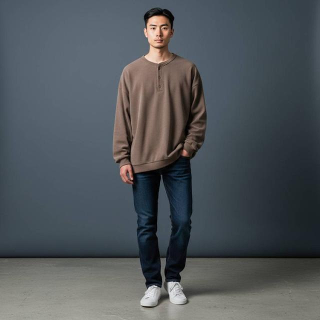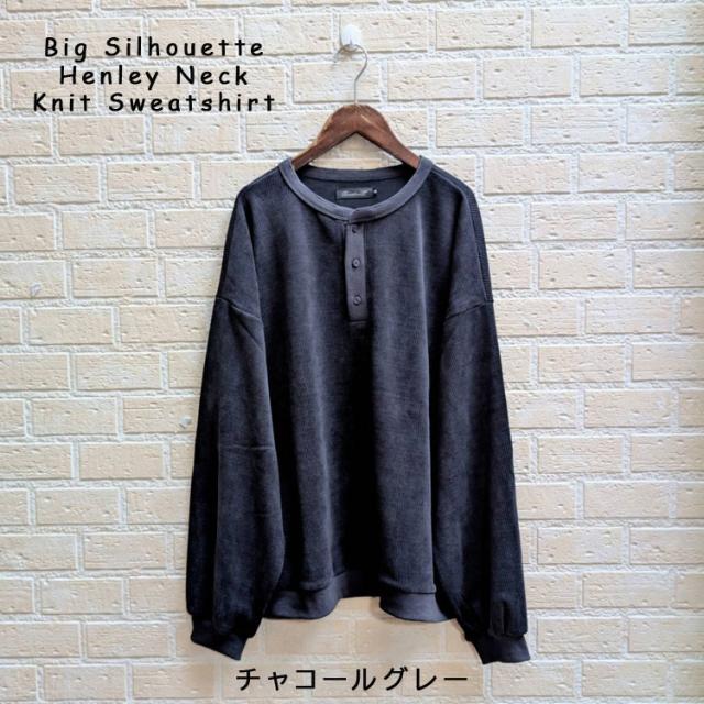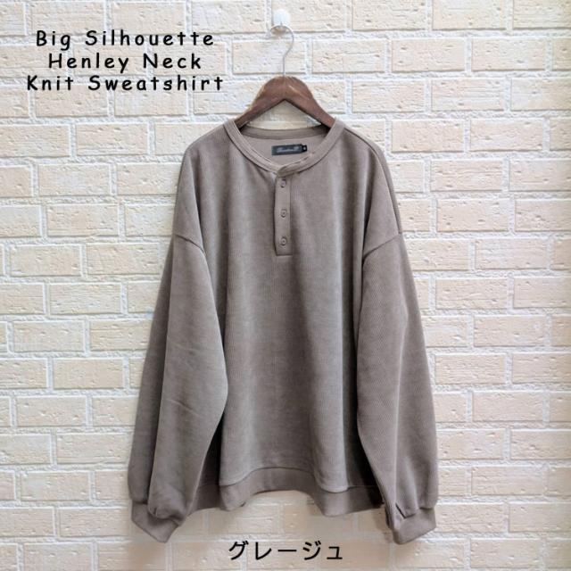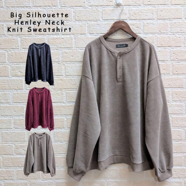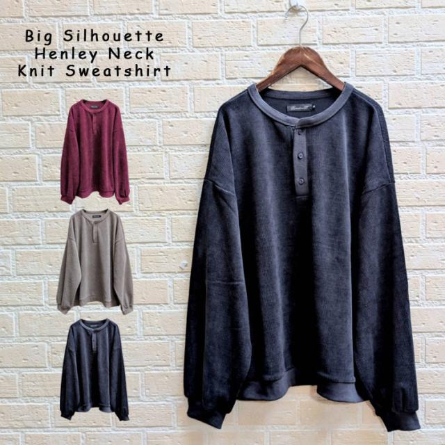 ニットソー ビッグシルエット ヘンリーネックトレーナー ルーズシルエット ドロップショルダー 長袖 ロンT オーバーサイズ ビッグTシャツ カジュアル きれいめ スタイル ユニセックス rv9238-67505