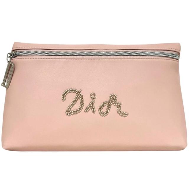 クリスチャン ディオール ポーチ ピンク BEAUTE 美品 小物入れ 合成皮革 中古 Christian Dior ファスナー ロゴ ビジュー コスメ メイクポーチ コスメポーチ ロゴビジュー レディース 女性 定番 人気 シンプル